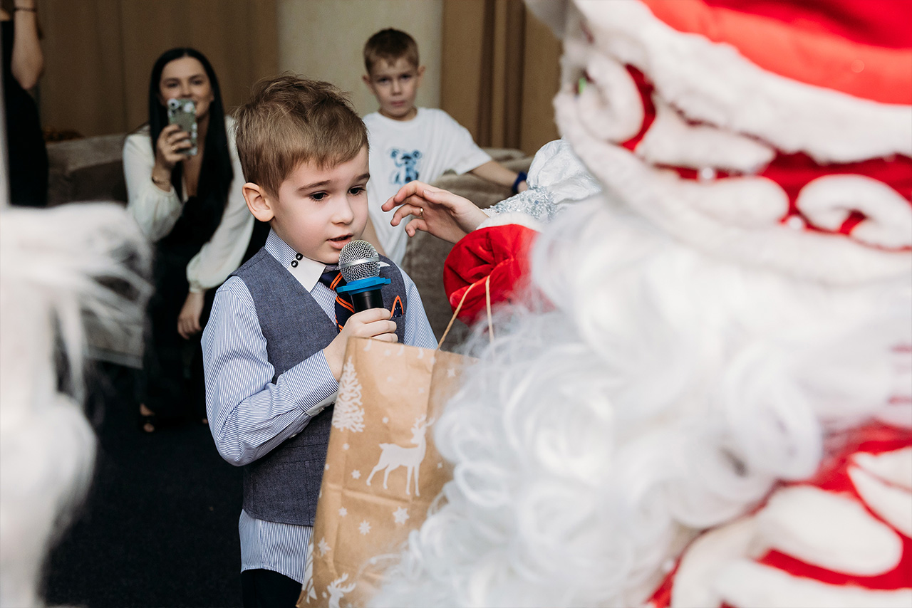 В стоимость детского билета входит фуршет с холодными и горячими закусками, салатом, горячим, десертом и, конечно же, подарок от Деда Мороза!
